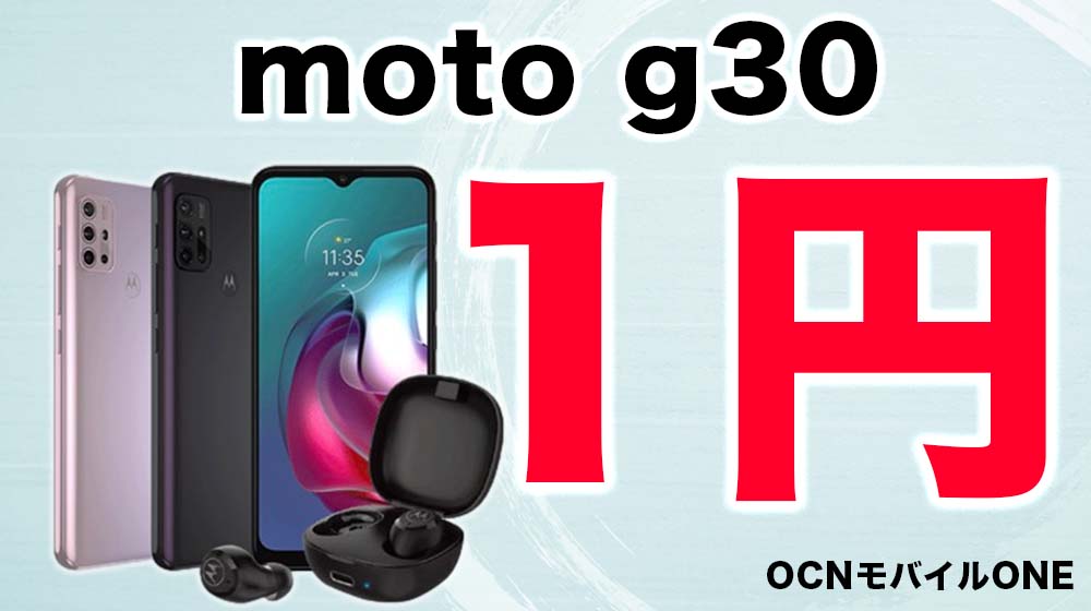 moto g30はモトローラ公式ストアで販売はされていますが、お値段は27,800円。それがOCNモバイルONEでは1円。仕入れ値がいくらか知りませんがよくこんな大盤振る舞いができるなぁ。