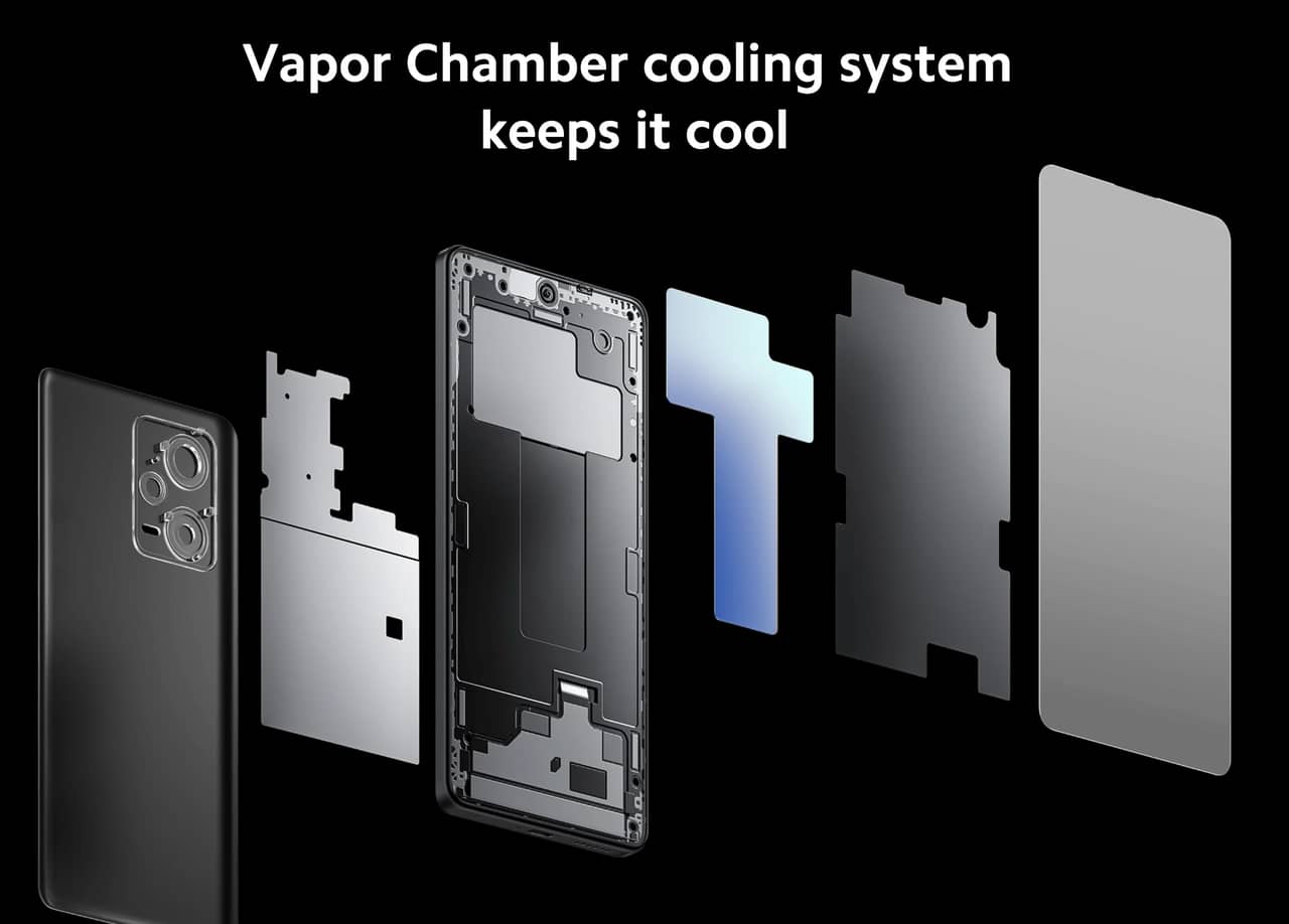 ▼またRedmi Note 12 Pro+ 5G グローバル版はベイパーチャンバーの冷却システムを搭載しているのも魅力です。↓
