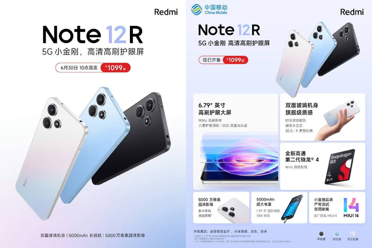 ▼気になるRedmi Note 12Rは6月28日に中国向けに発表されています。中国SNSのWeiboで外観・スペックも明らかになっていました。↓