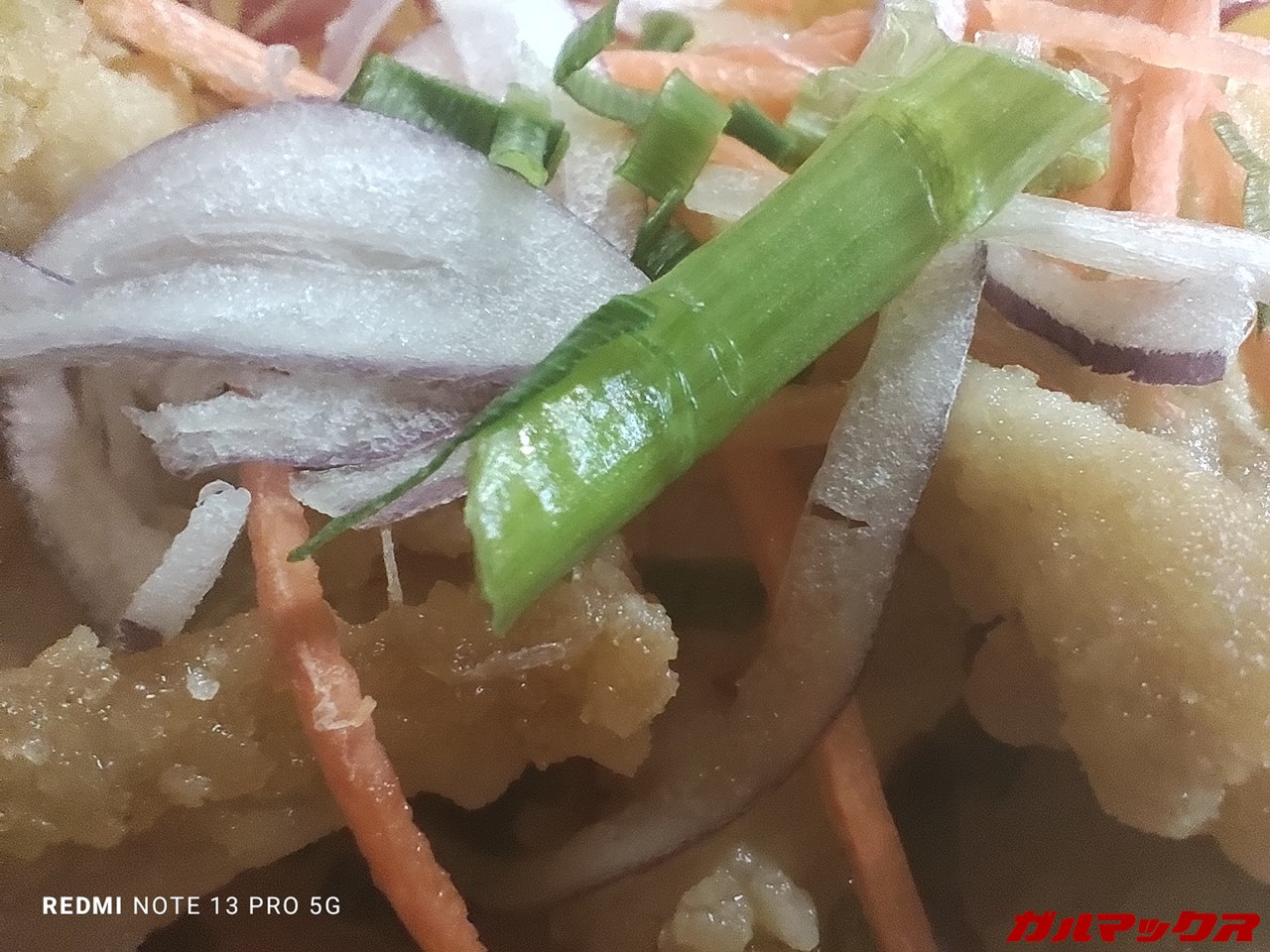 ▼飯撮りはこんな感じ!結構AI補正が強めですね。ネギがかなり明るくなってます。↓