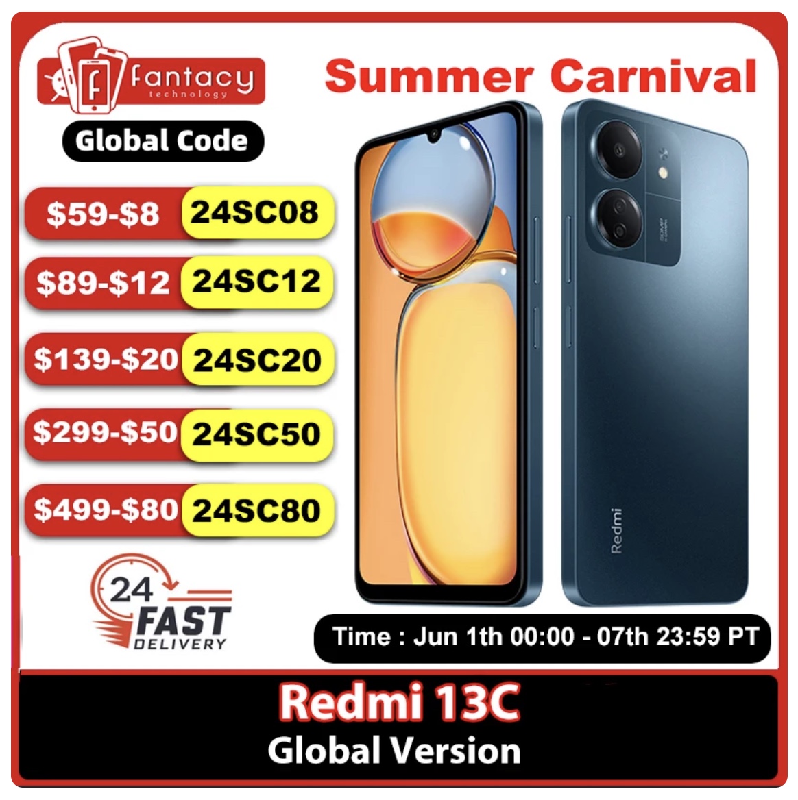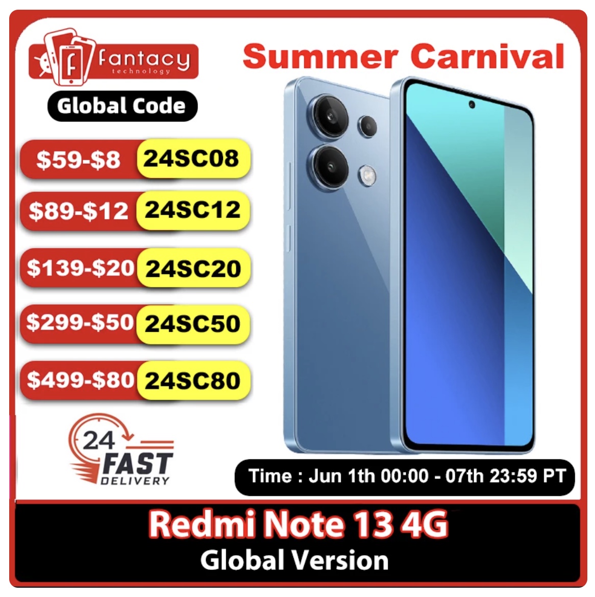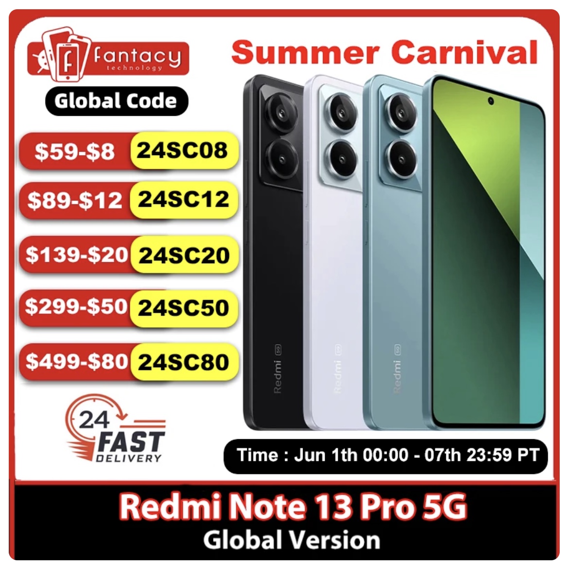 AliExpressで2024年6月1日16時-6月7日15時59分の期間で開催されるメガセールにて FANTACY TECHNOLOGYがRedmi Note 13シリーズを大幅値下げ!セール価格も安いですが、ストアクーポン+AliExpressのクーポン併用で更にお得になりますよ!