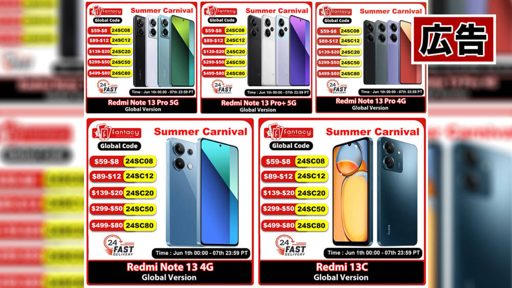 AliExpressで2024年6月1日16時-6月7日15時59分の期間で開催されるメガセールにて FANTACY TECHNOLOGYがRedmi Note 13シリーズを大幅値下げ!セール価格も安いですが、ストアクーポン+AliExpressのクーポン併用で更にお得になりますよ!