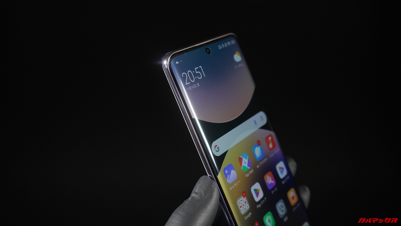 前モデルのRedmi Note 13 Pro 5Gは側面がフラットなタイプだったんですが、Redmi Note 14 Pro 5Gはエッジディスプレイを採用しつつ背面パネルも同じように丸みを帯びている形状に!