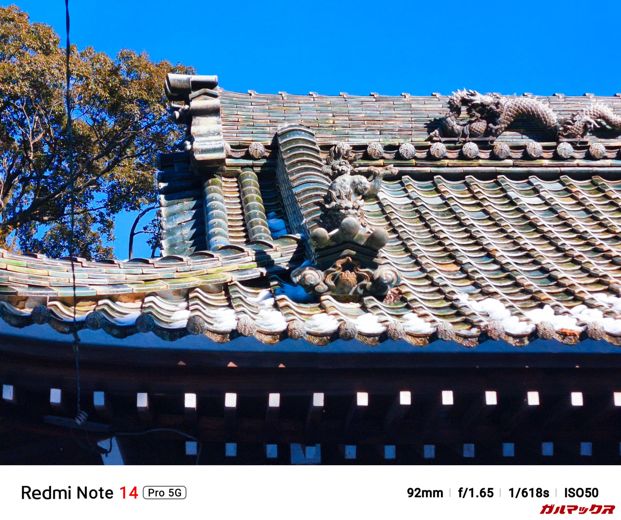 デジタルズームだと倍率を上げるほど粗くなるんですが、Redmi Note 14 Pro 5Gなら2倍・4倍は劣化のないロスレスズームで撮影を楽しめちゃいます。