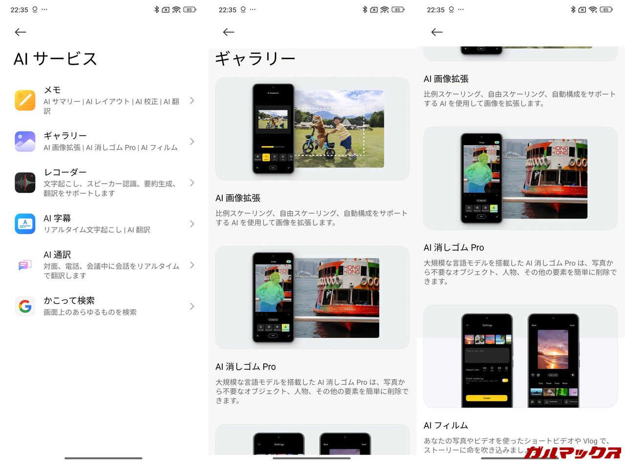 ▼AIサービスはこんな感じ。例えばギャラリーだとこんな感じの機能が使えます。↓