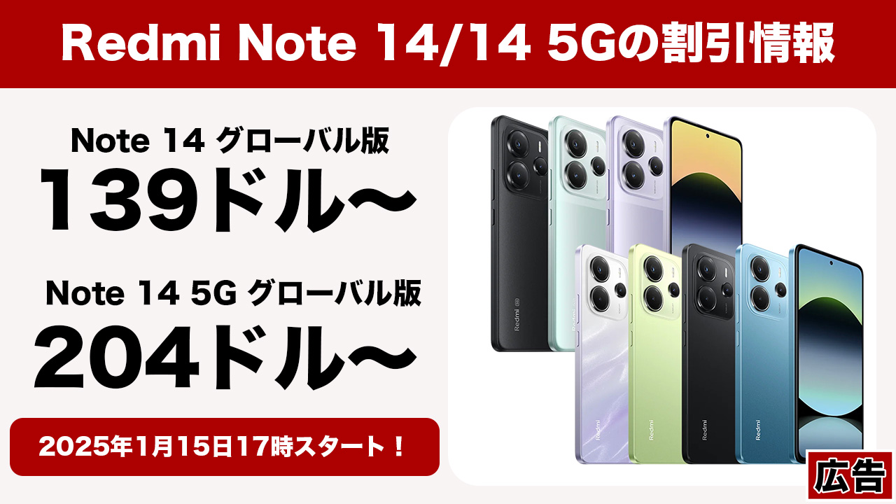 2.2万円~!グロ版「Redmi Note 14」「Redmi Note 14 5G」が初売り割引!