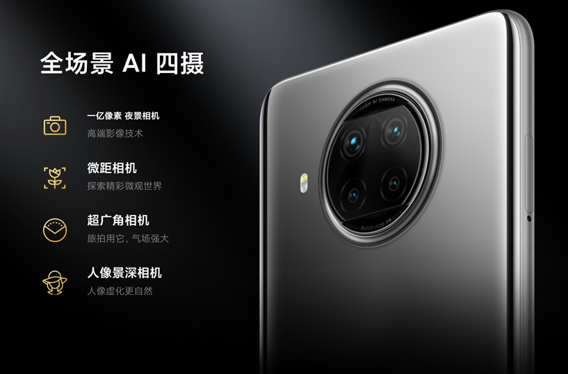 Redmi Note 9 Pro 5Gのリアカメラは広角のメインカメラ(1億800万画素)、ワイド画角の超広角カメラ(800万画素)、接写用のマクロカメラ(200万画素)、深度測定カメラ(200万画素)の4眼構成です!