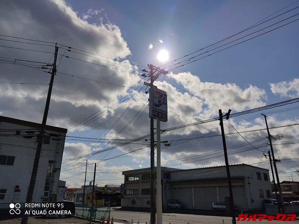 ▼とくに、太陽を写しての逆光シーンでもすごく頑張ってるのは驚き!しっかりとセ○ンイレブンの看板が色付きで収められております。↓