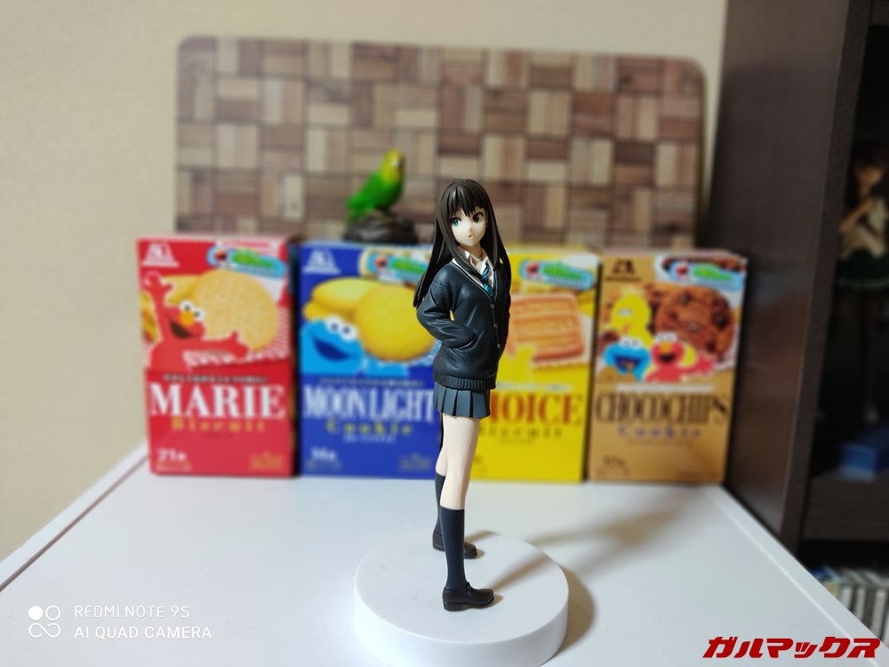 ▼顔認識するため筆者の各スマホ界で人気な渋谷凛ちゃんのフィギュアでポートレート撮影を試してみました。ズームしてよく見ると黒色部分はごくわずかに境界ボケがありますが、逆に言えばズームしなければ見えない位に殆ど完璧な出来栄えです!左が通常、右がポートレートです!↓