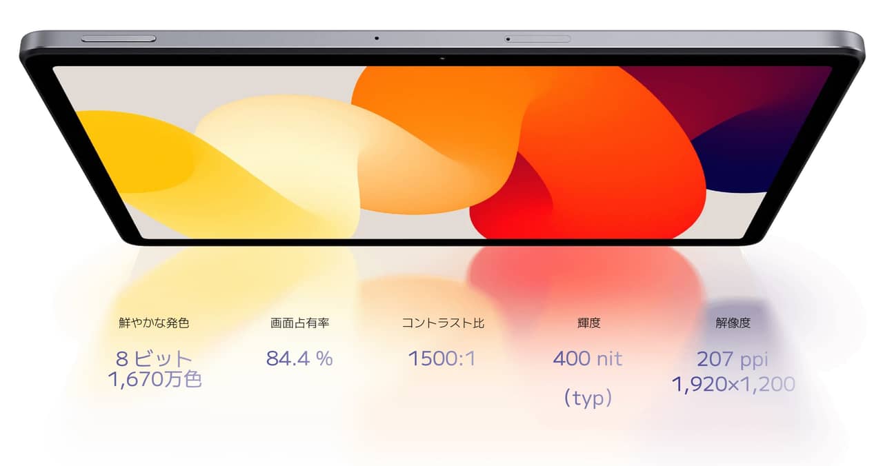 ▼というわけで、Redmi Pad SEはエンタメ部分にスペックを注力しています。まずディスプレイに注目。11インチとデカくて解像度もWUXGA+(1,920×1,200)クラスと高解像度。↓