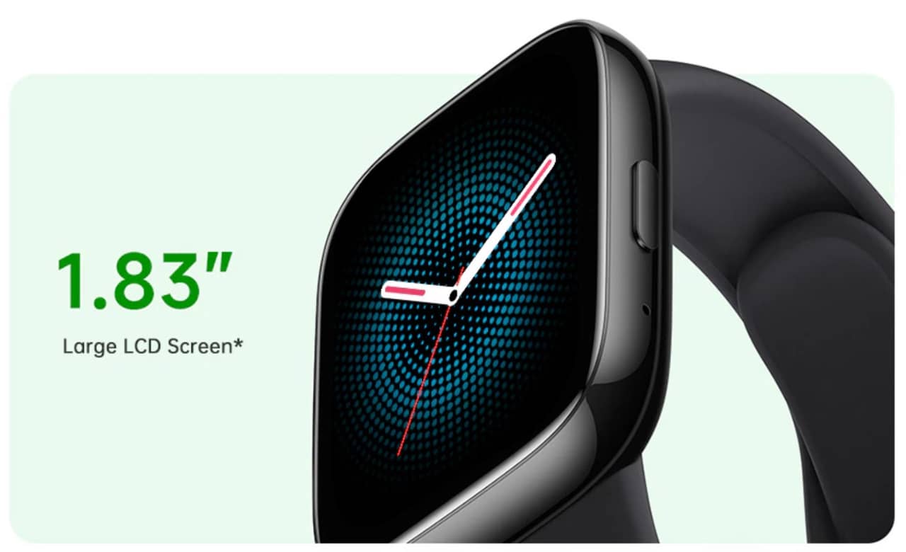 ▼ディスプレイは1.83インチとスマートウォッチとしてはかなり大きなサイズで迫力ありそうですね。解像度は240×280。↓
