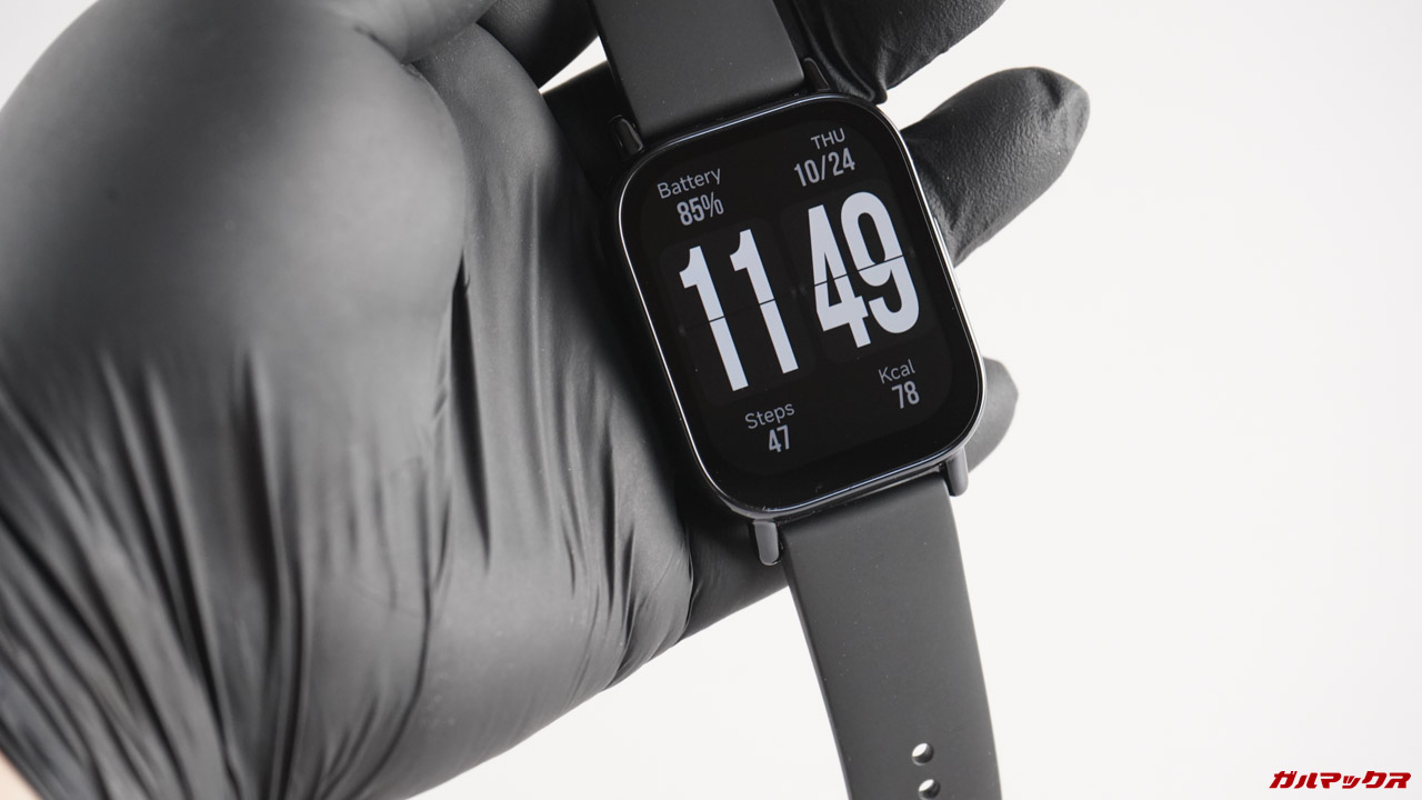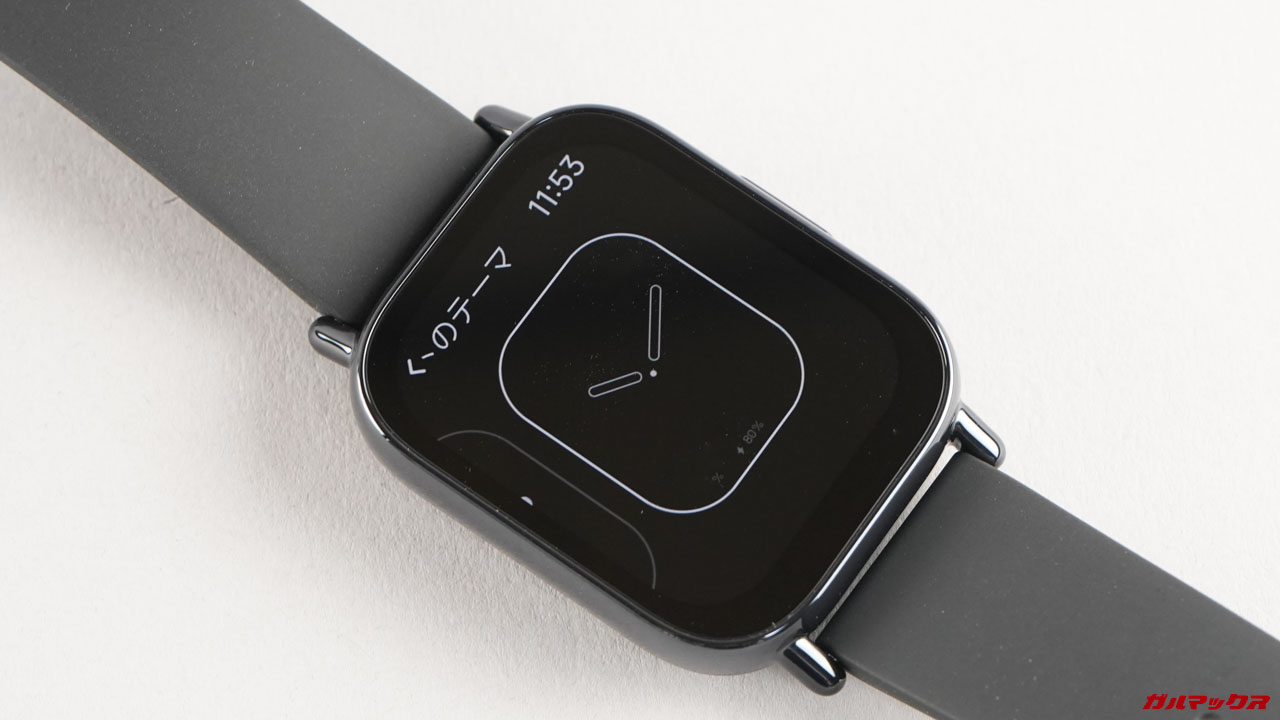 上の写真を見てApple Watchのような丸っこさをイメージしていましたが現物はイメージよりも丸っこくない印象です。