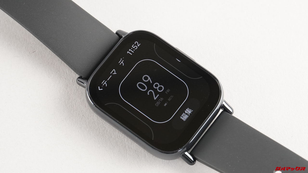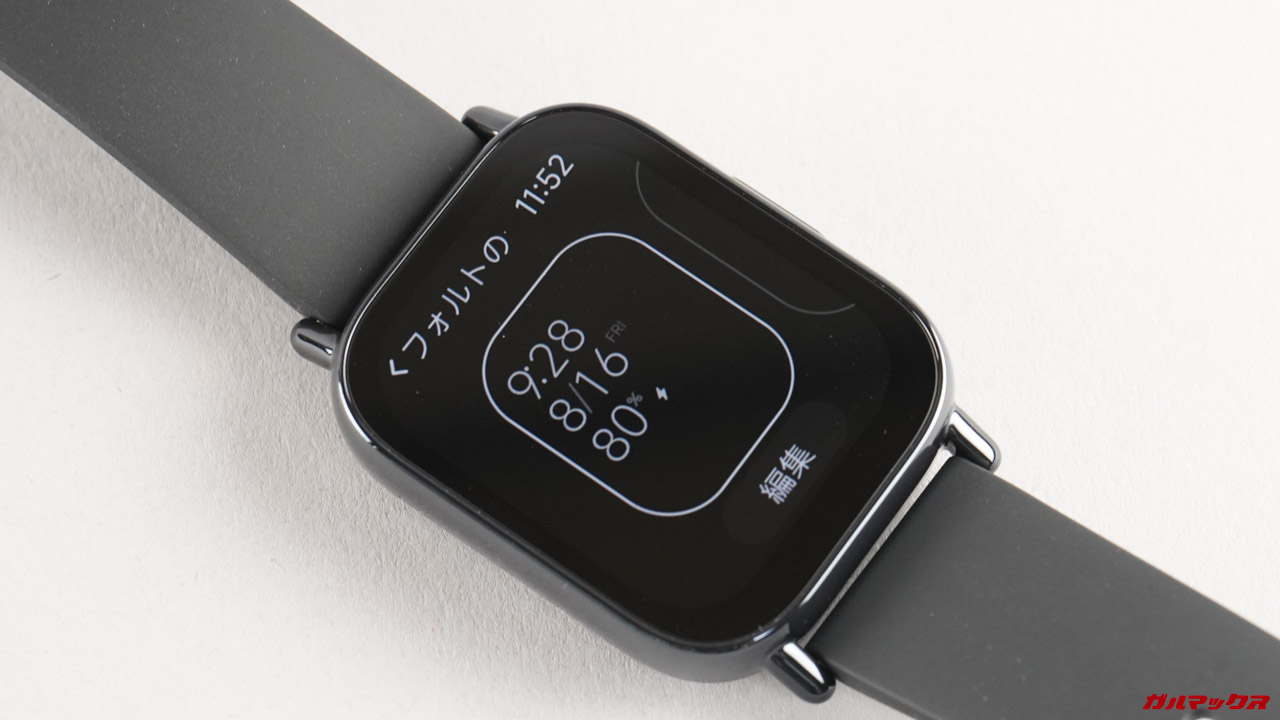 ディスプレイは大型の1.96インチ。有機ELなのでAoD表示(常時表示)にも対応します。