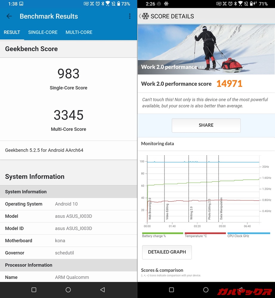流石ゲーミングモデル!だけあって、普段使いもゲームでも処理性能に困ることは一切ありませんでした。最強クラスのSnapdragon 865 Plus搭載はもちろん、ストレージ規格もUFS3.1のため、読み込みがメチャメチャクチャ速いです!サイコー!