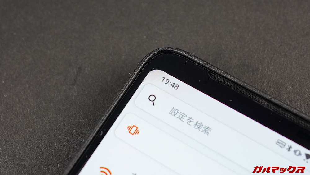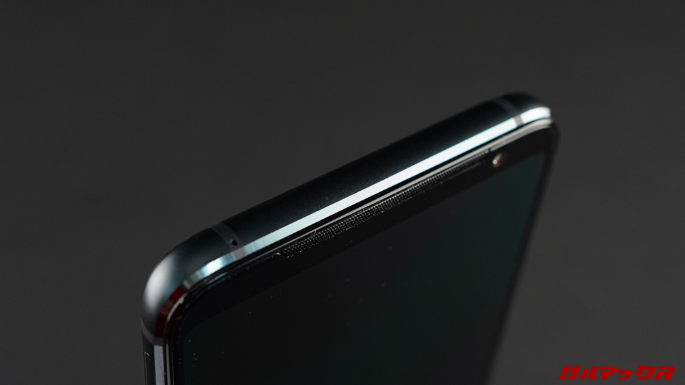 ▼欠けのない形状だけでも高得点なんですが、ROG Phone 3はさらに4隅のカドのカーブが小さいのも高評価できるポイント!馴染みやすくシンプルで表示領域に優れる意味でも、とてもこの形状が好きです。↓