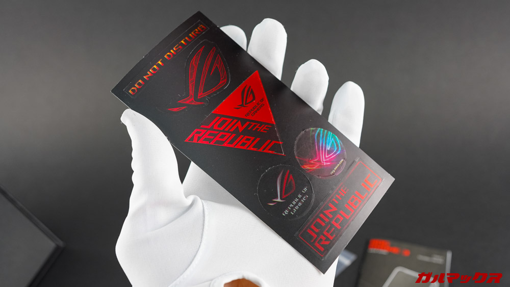▼ASUS ROGブランドのオリジナルステッカー付き!マニア魂をくすぐらせてくれますね(っ´∀`)っ。↓