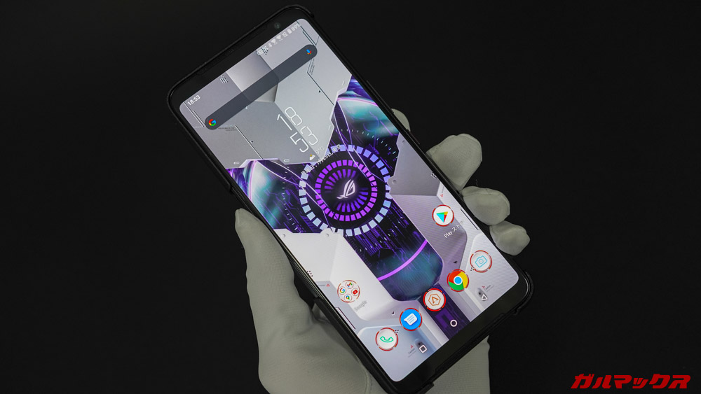 このROG Phone 3、とにかくデカいです。タテのサイズが171mmと他モデルよりも抜きん出て長いため存在感がすごい!見た目の迫力もあってとんでもなくカッコ良い。