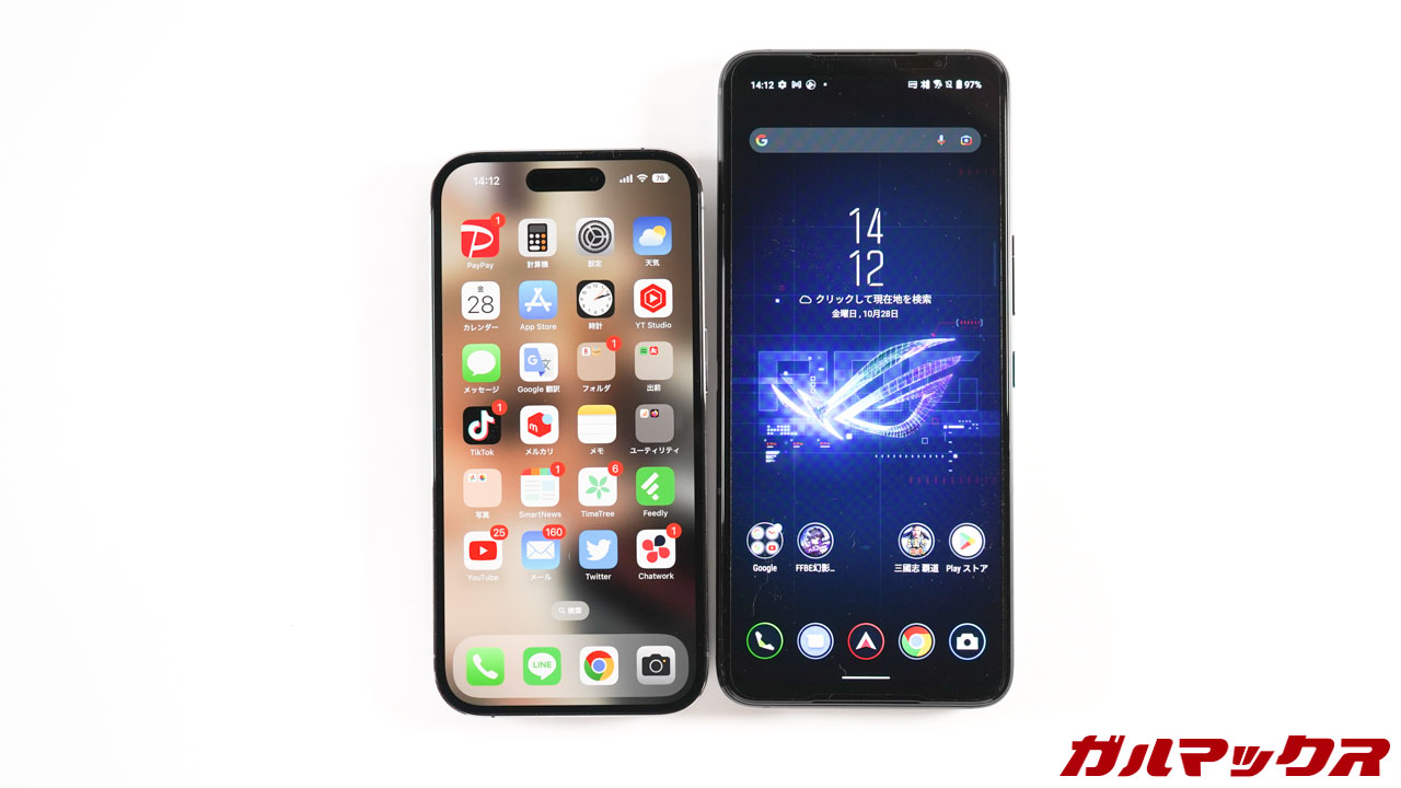▼1倍で比較。左がROG Phone 6 Pro、右がiPhone 14 Proです。↓
