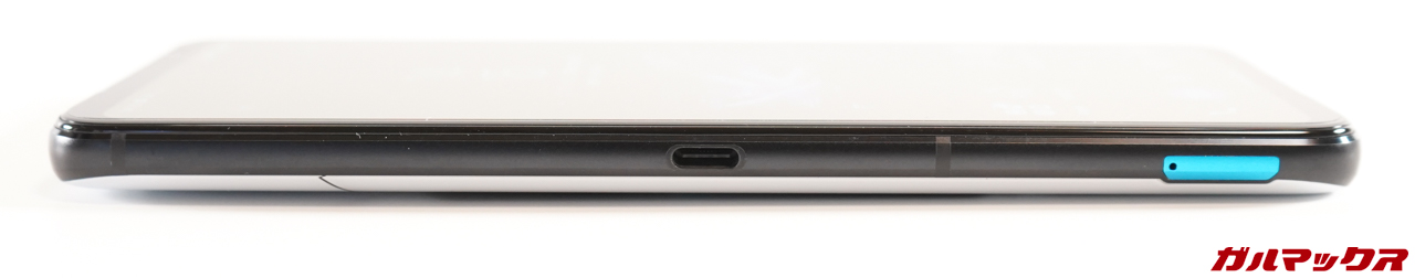 ▼左側面には横持ちでの給電時にケーブルが邪魔にならないようUSB-Cポートを備えてます。SIMトレイは差し色となっていて、ブラックはレッド、ホワイトはブルーでした。↓