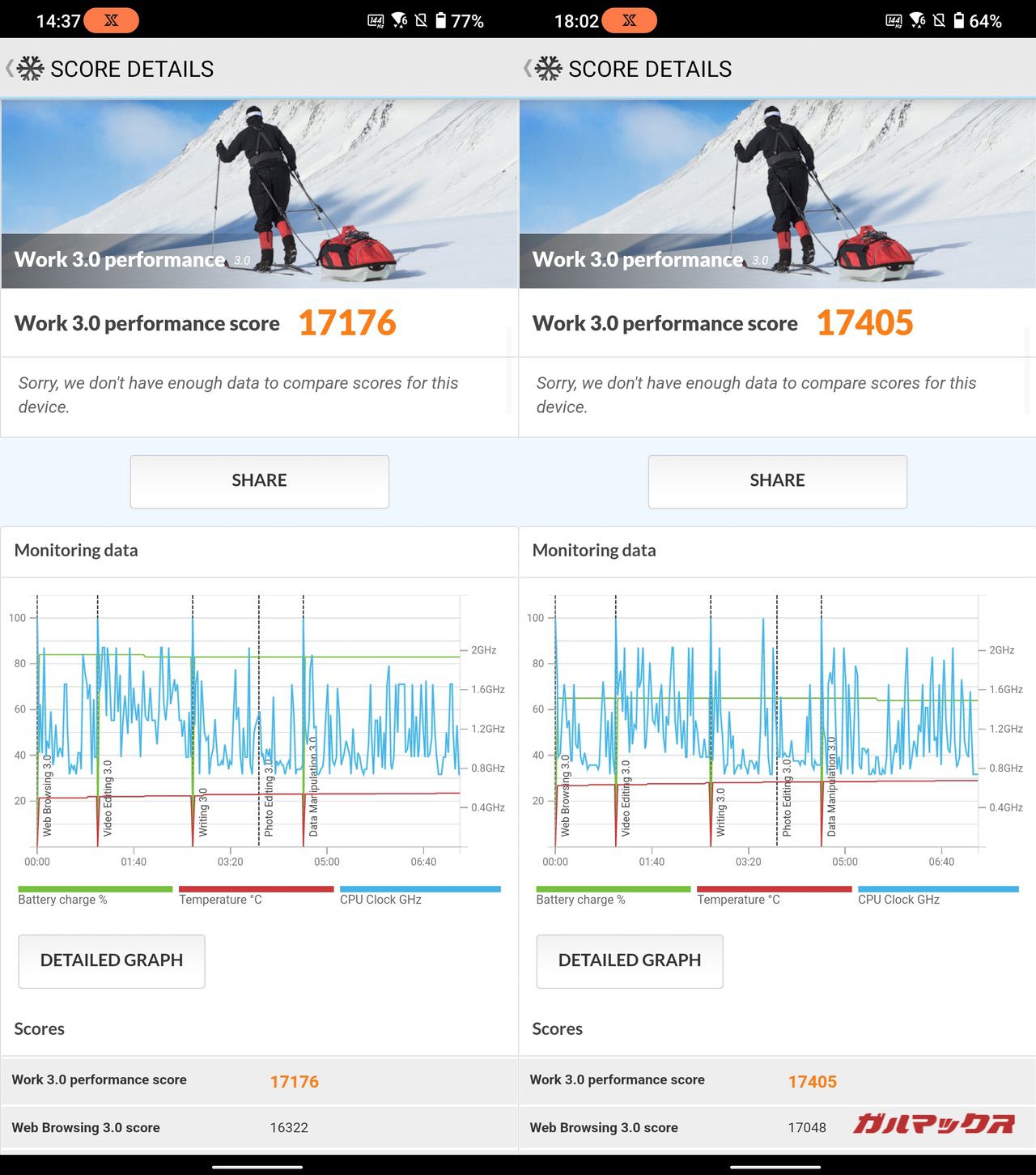 ▼3DMarkのスコアは以下の通り。左がROG Phone 6、右がROG Phone 6 Proです。↓