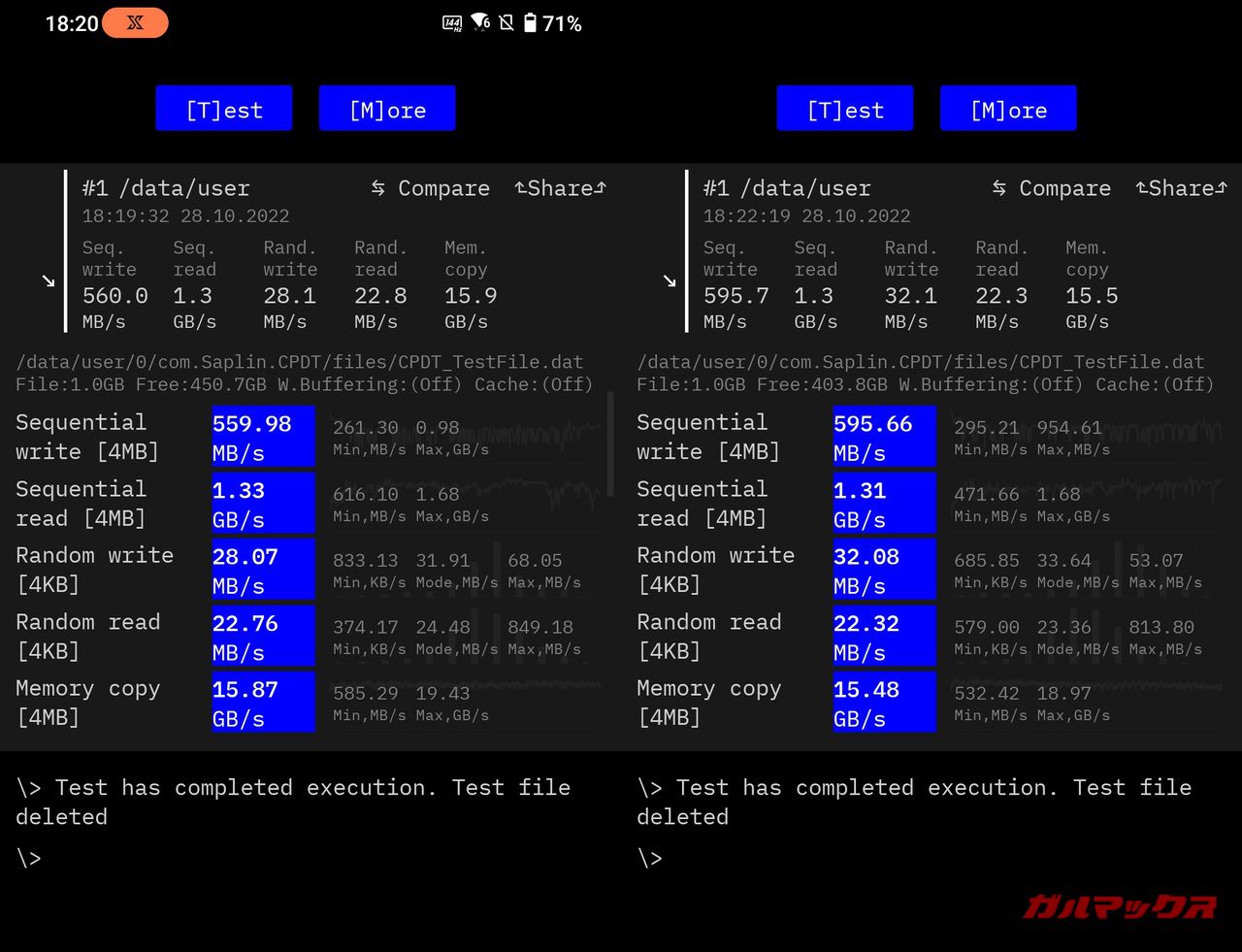 ▼ストレージ速度は以下の通り。左がROG Phone 6、右がROG Phone 6 Proです。↓