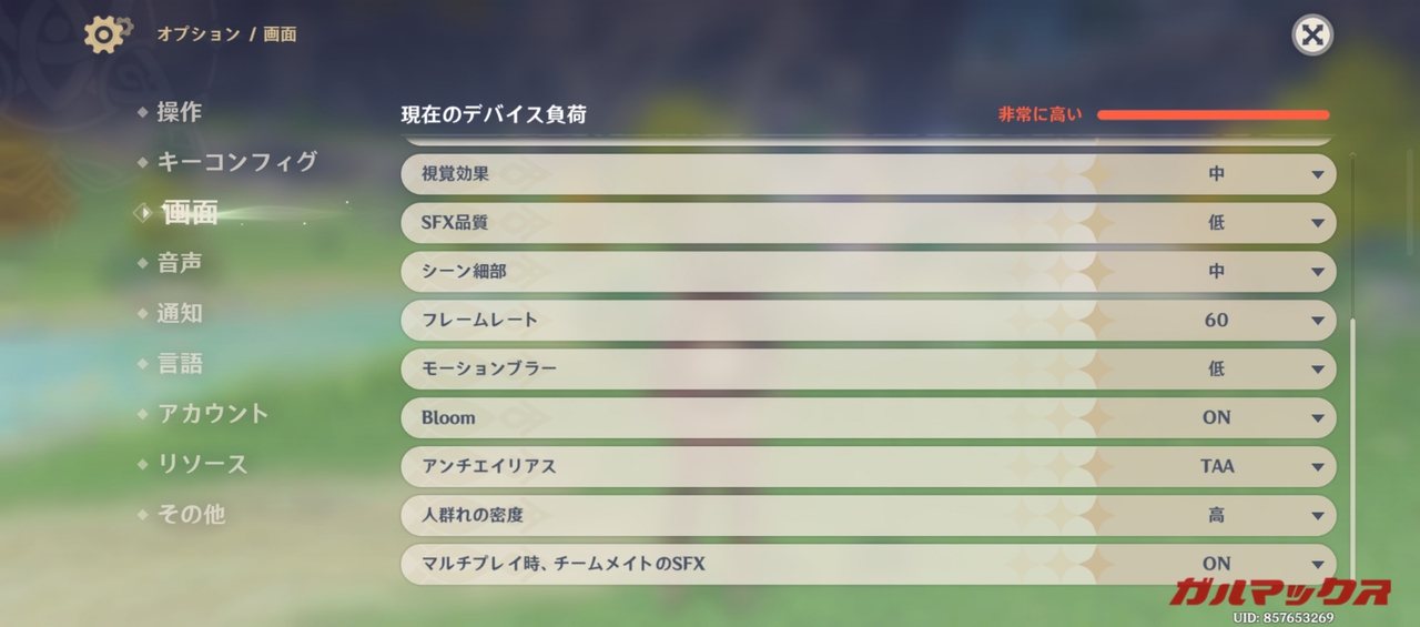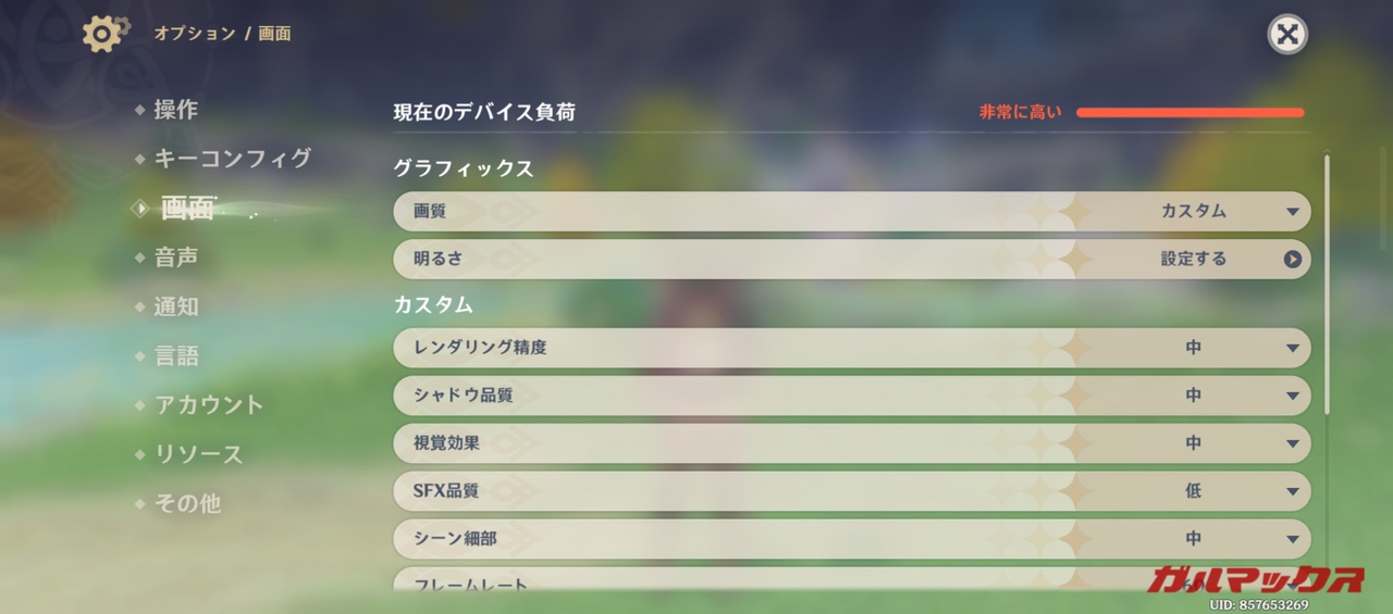 ▼ROG Phone 6 / 6 Proの測定はデフォルトで「中」です。フレームレートは60FPSに設定しています。↓