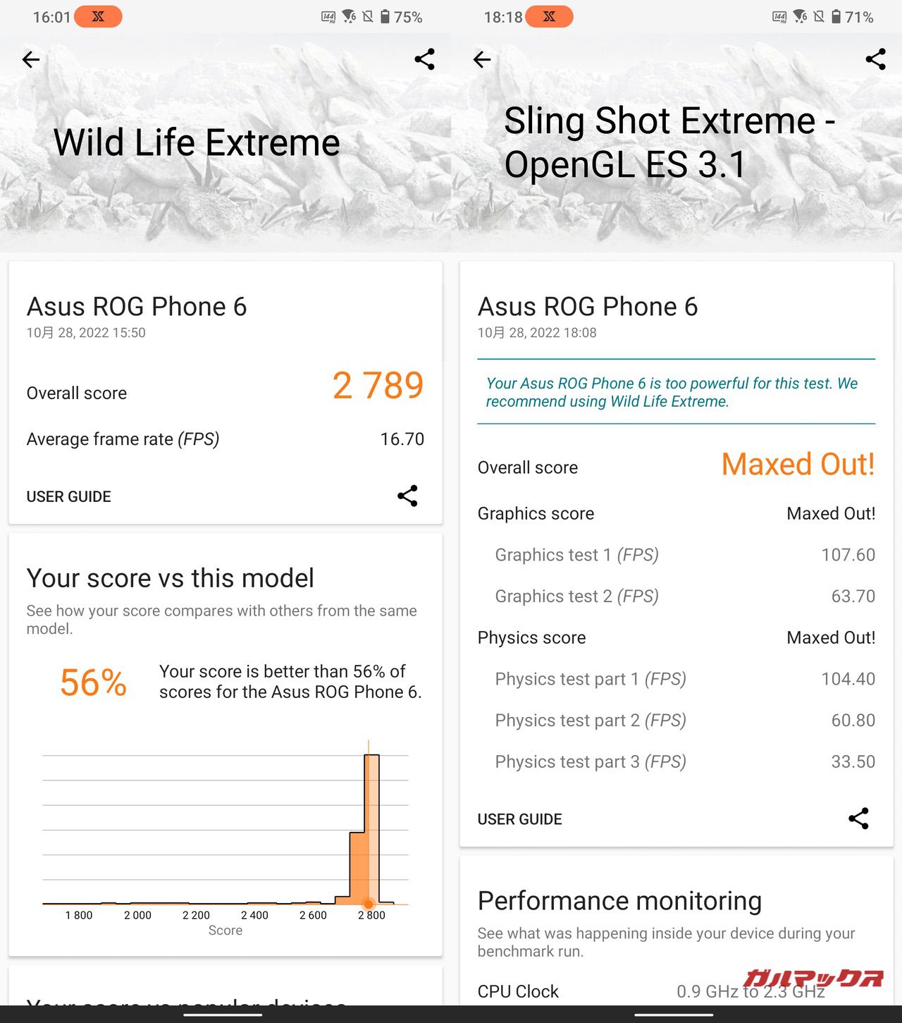 ROG Phone 6とROG Phone 6 Proでベンチマーク、実ゲームでの挙動に明確な違いが見られないことから、コスパを重視するならROG Phone 6が良いかと思います。