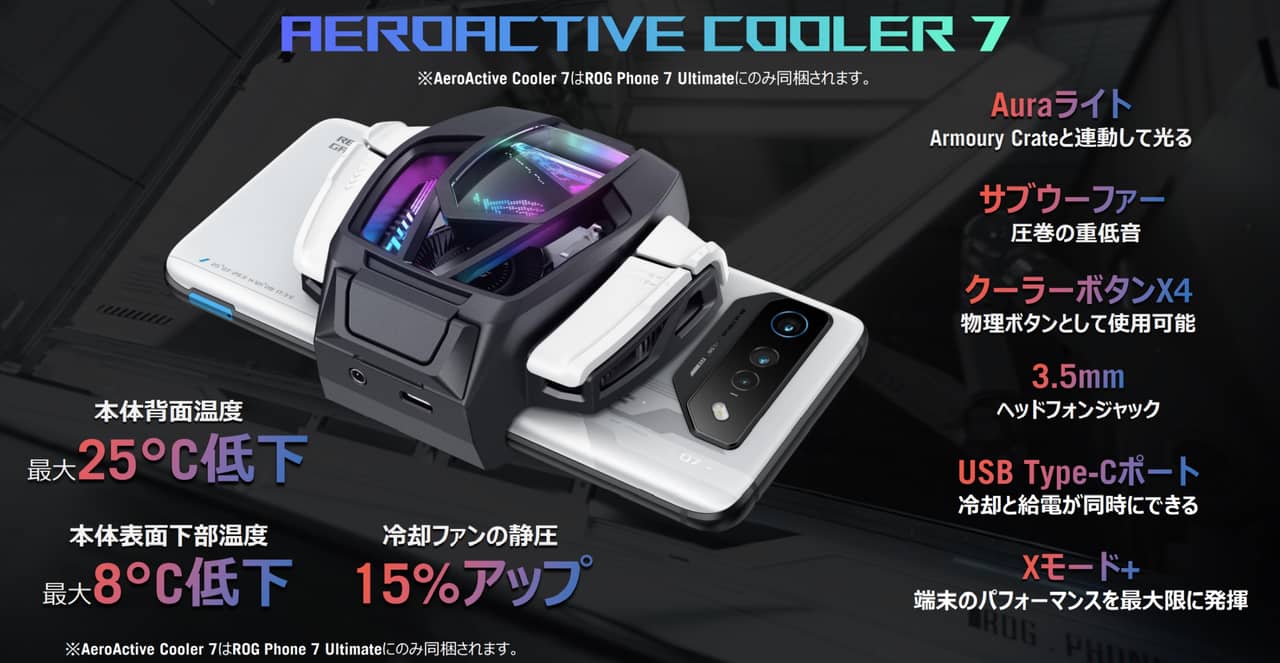 ちなみにROG Phone 7もAeroActive Cooler 7や前モデルのAeroActive Cooler 6が取付可能!