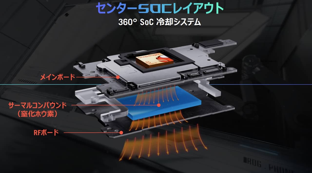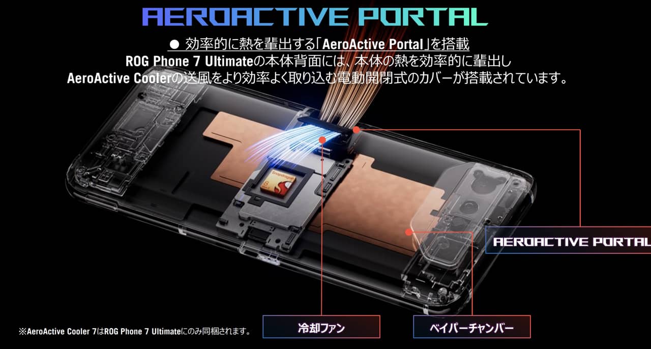 ROG Phone 7 / 7 UltimateはSoCを強力に冷やす冷却システムを搭載。