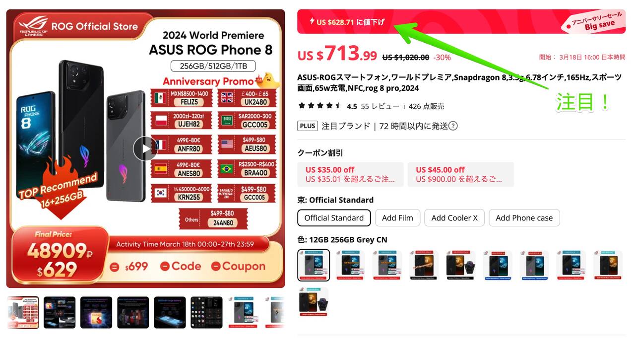 ROG Phone 8(Global ROM版)は628.71ドルに。さらにクーポン使えるかも