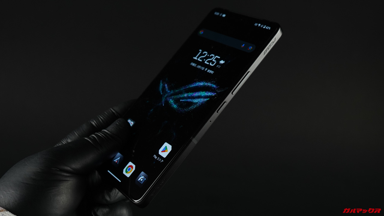 ▼側面にはゲーミングモデル特有のLRタッチセンサーが備わっているのでゲームのコントローラーのように操作出来ちゃいます。↓