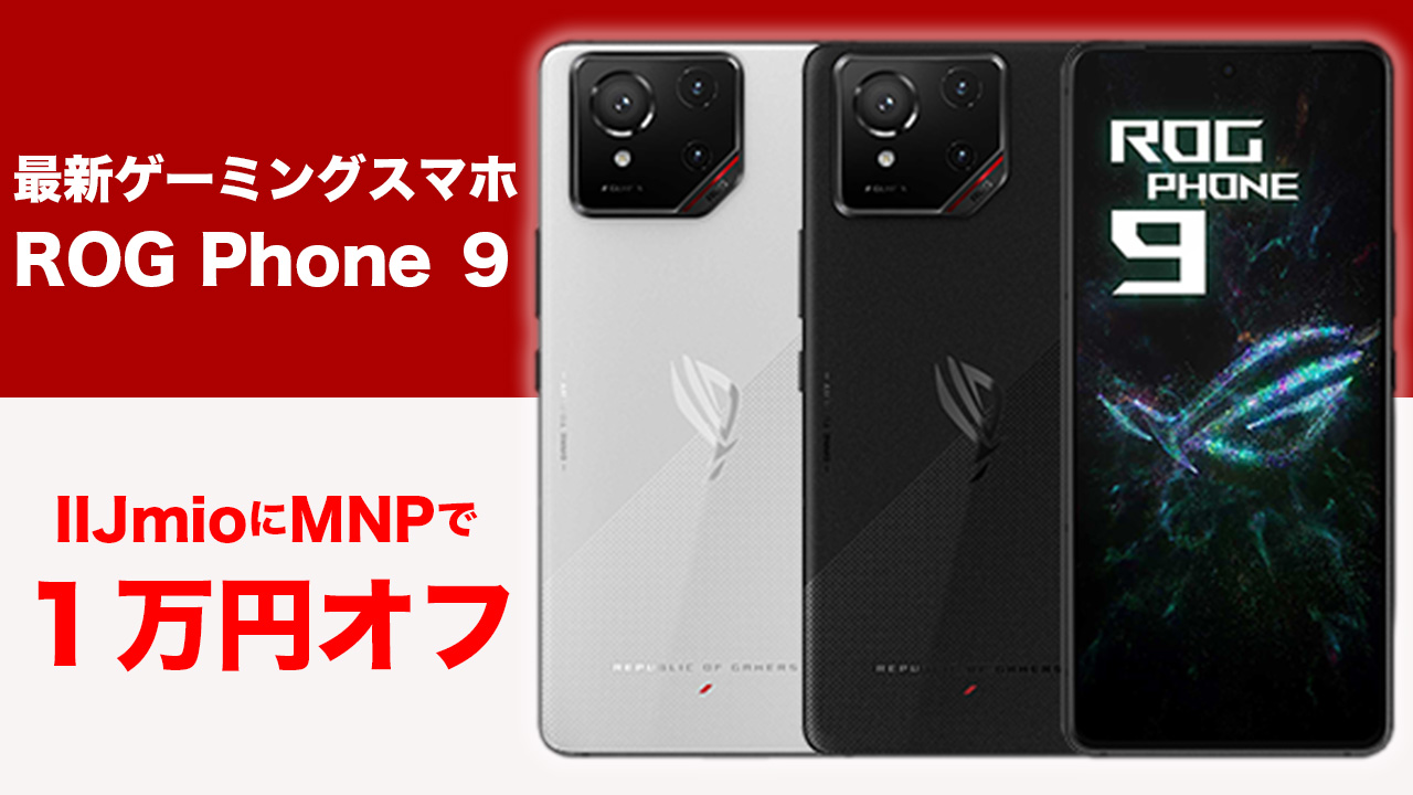 IIJmioがASUSの最新ゲーミングスマホ「ROG Phone 9」を2025年6月13日10時から販売開始。MNPならメーカー価格より1万円安く購入できるので、IIJmioへMNPを検討している方はチェックしてみて下さい!