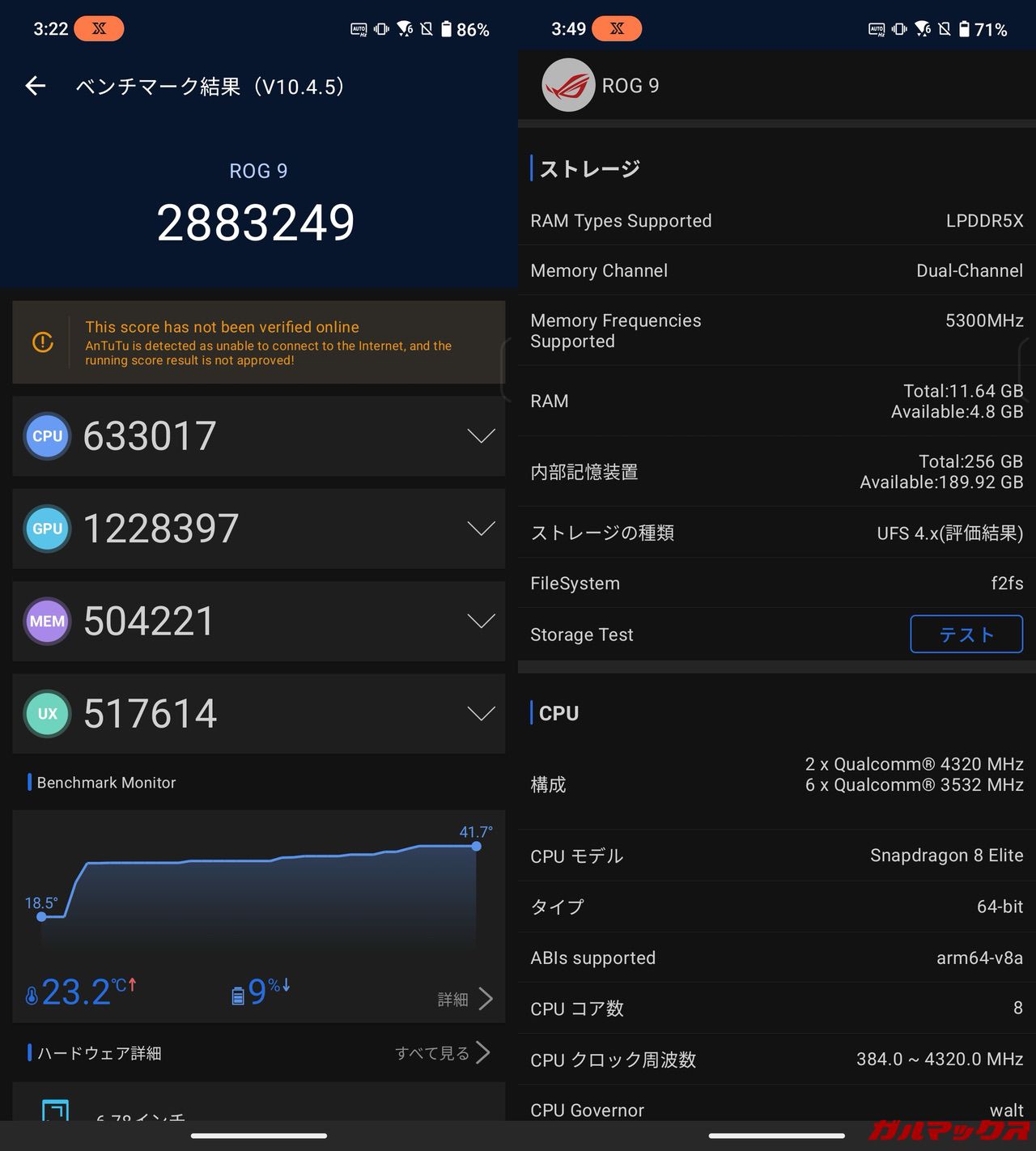 ROG Phone 9スペック・ベンチマーク、検証結果