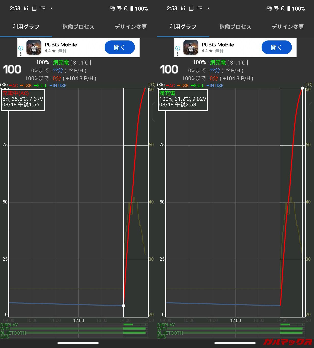 ▼充電は5%→100%で57分。ゲームを遊びすぎて寝落ちしても朝の身支度の時間で十分なバッテリーを充電できます。でも遊び過ぎは注意ね。↓