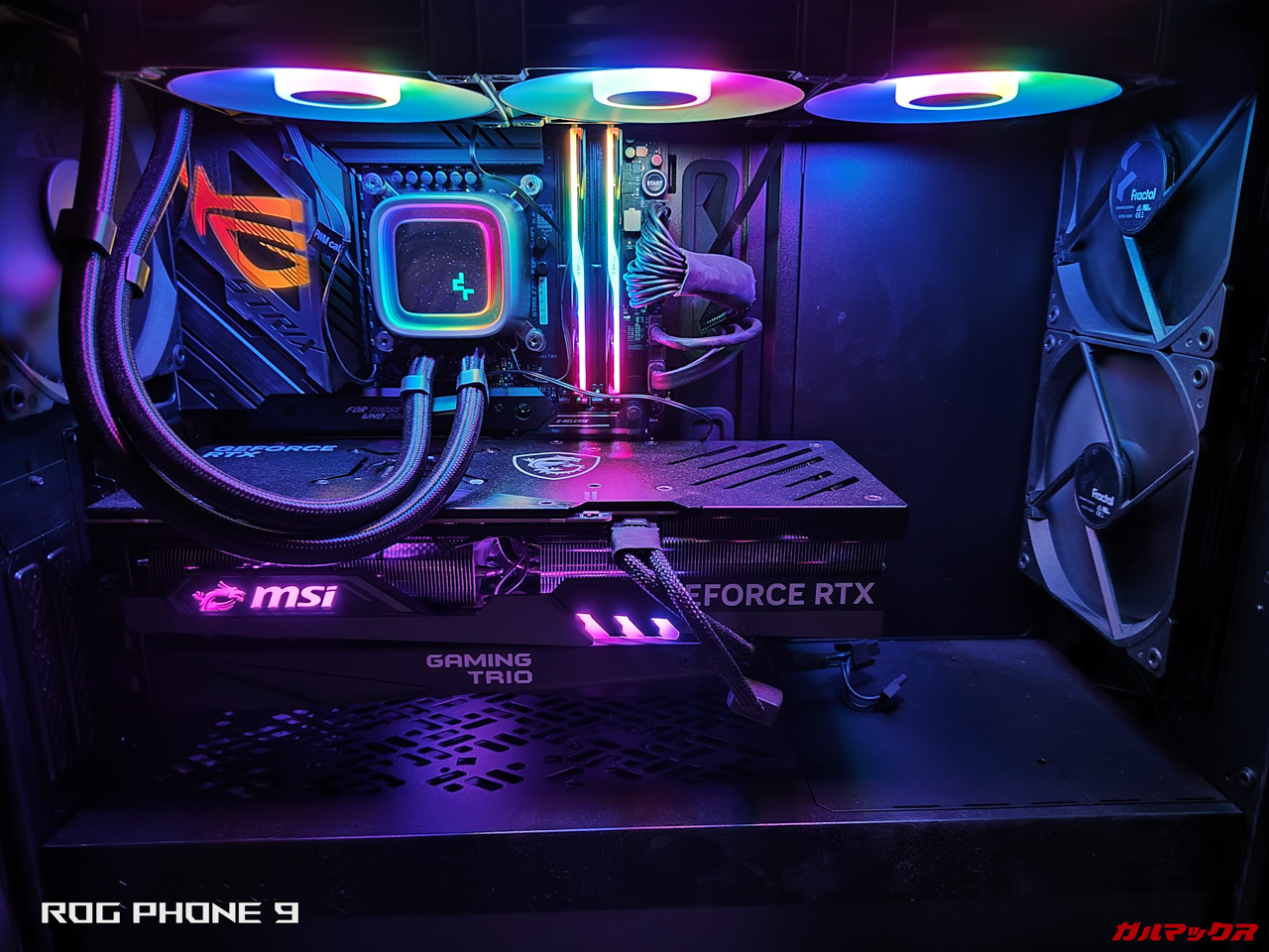 こんなところ光ってどうするんだろう?と思ってましたが、実機で見てみると・・・想像以上にカッコいいんですけど!点灯パターンも凝っていて、虹色に光るザ・ゲーミングといったインパクトとはまた違う雰囲気でCoolに仕上がっております。