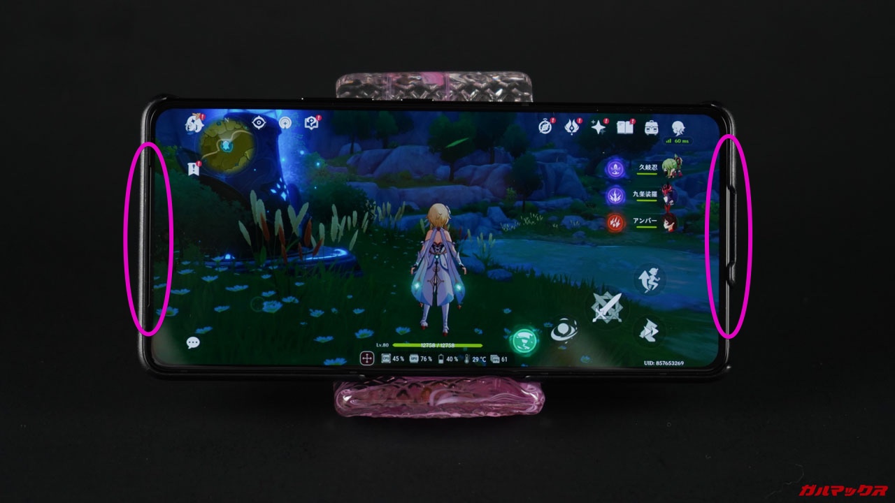 ▼右側面はゲーミングモデルの証であるLRタッチセンサー!その他、音量ボタン、電源ボタンが備わっていました。↓