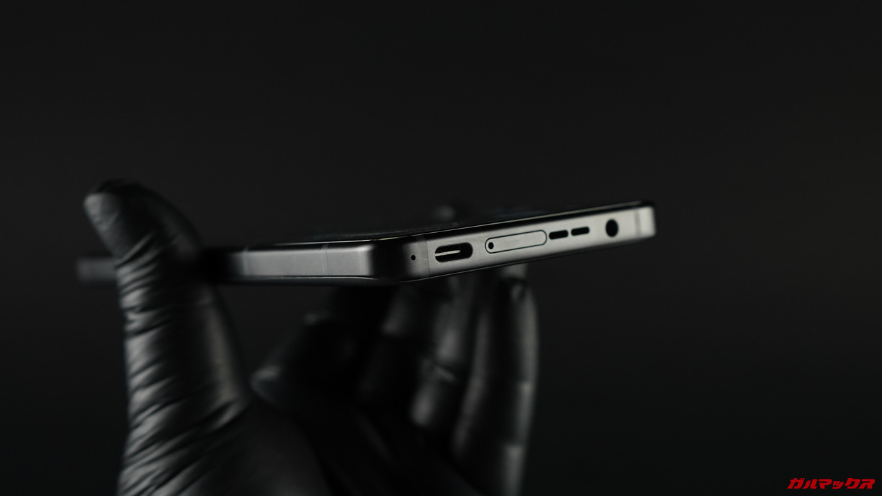 ▼下部はUSBポート、SIMスロット、スピーカー、イヤホンジャックを搭載。↓