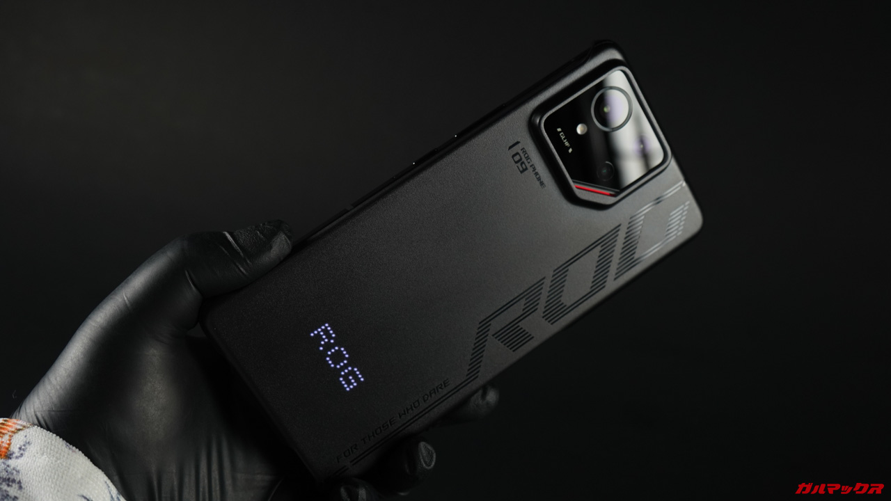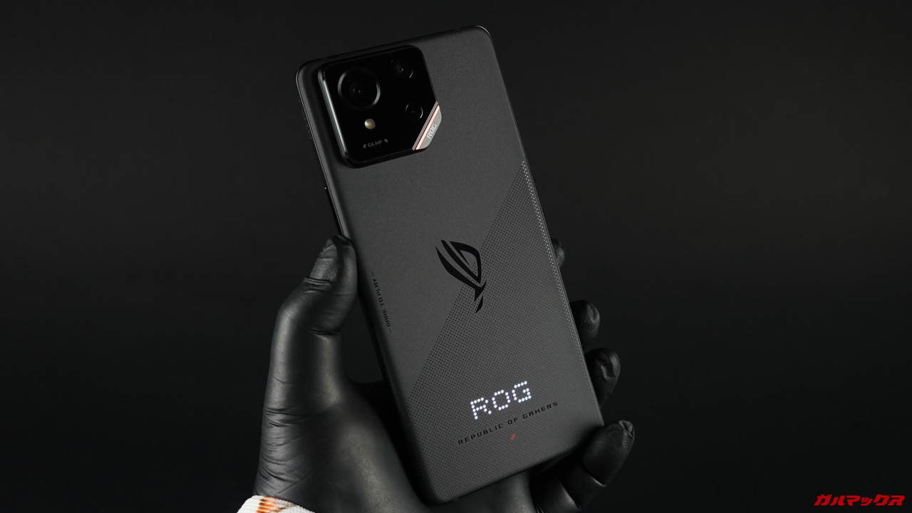 ROG Phone 8は背面のロゴ部分に光るギミックが埋め込まれていましたが、ROG Phone 9はロゴが光らない変わりに上位モデル譲りのAniMe Visionに対応!