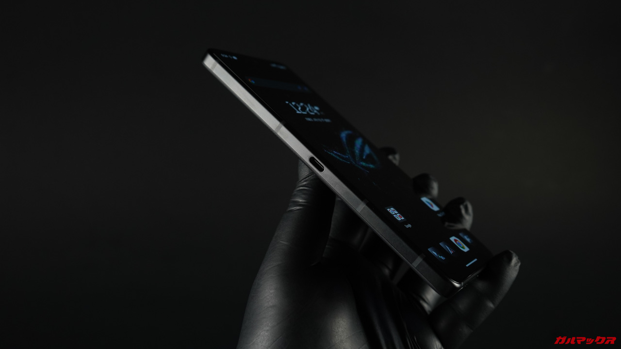 ▼これは左側面。横持ちプレイ時にケーブルを挿しても邪魔にならないようUSB‐Cポートを搭載!なお、このポートは外付けクーラーの接続なんかにも使います。↓
