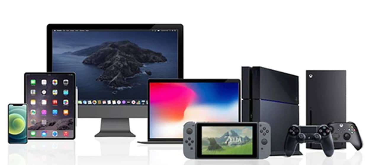 ▼接続対応機器も幅広く、AndroidやiOSスマートフォン、Windows、MacやPS4、Xbox、Switchなど多彩!つまりテレビやモニターなしでゲームもできるというのが便利なシロモノ。↓