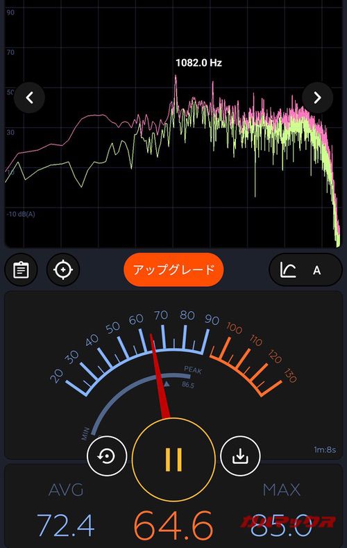 ▼ちなみに1m離した状態で「弱」の騒音は65dbくらい。強だと70dbを超える。一般的な掃除機と同じくらいの騒音だ。↓