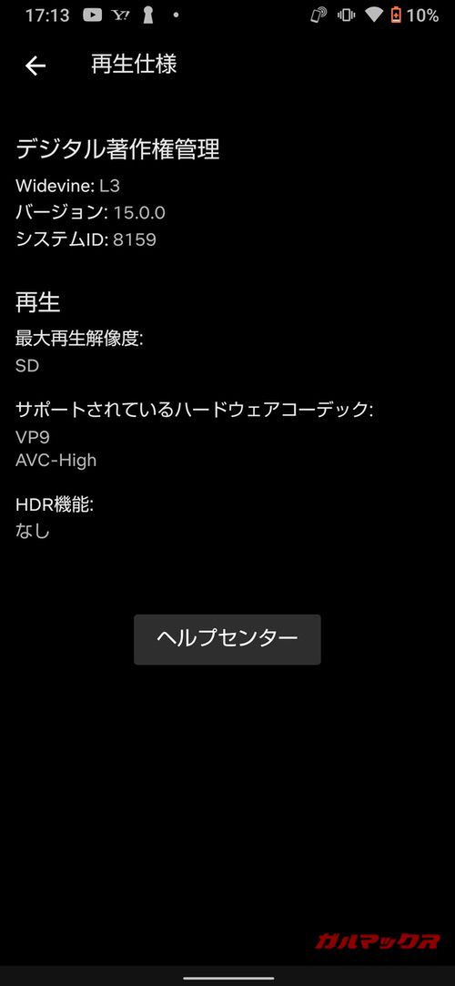 ▼ガルマックスではWidevine L1の確認でNetflixアプリを使っていたんですが、再確認したところ、NetflixではWidevine L3となっていることを確認。↓