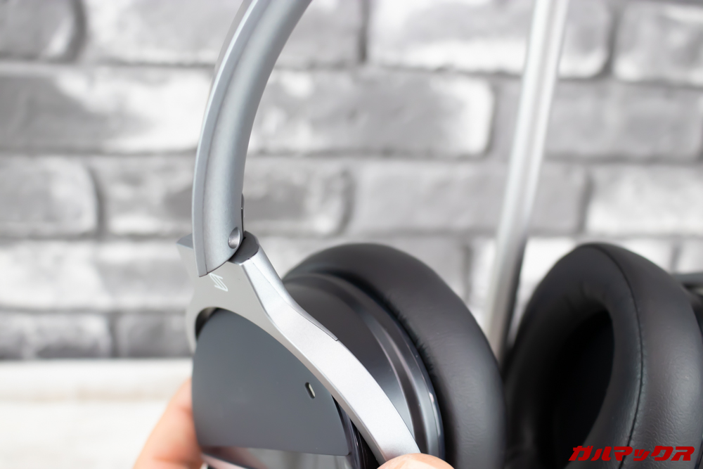▼ヘッドフォンは全体出来に樹脂を採用していますが、素材にSABIC C1200HFを採用することで頑丈な作りとなっています。落ち着いた色合いとシンプルなデザイン・形状。質感的は悪くありませんが、樹脂なのでハウジング部は普段使いしていると傷が少々目立ちます。↓