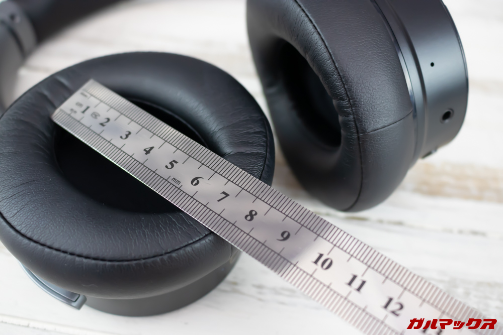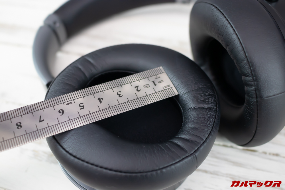 ▼イヤーパッドは楕円形形状で縦が約6cm、横幅は約4cmのサイズです。↓