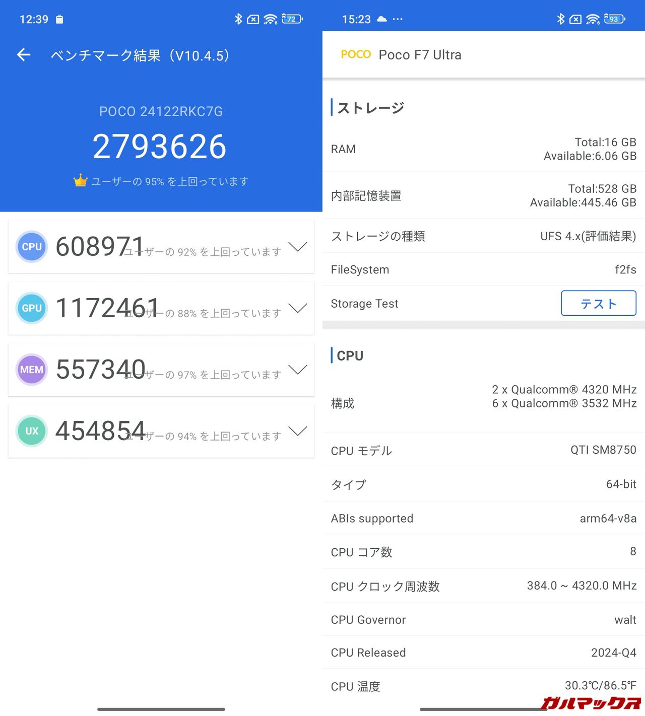 ▼SoCはDimensity 8400‐Ultra!AnTuTuスコア的には一昔前のハイエンドレベル。原神も画質「中」でサクサクと遊べるパワーを持ってます。↓