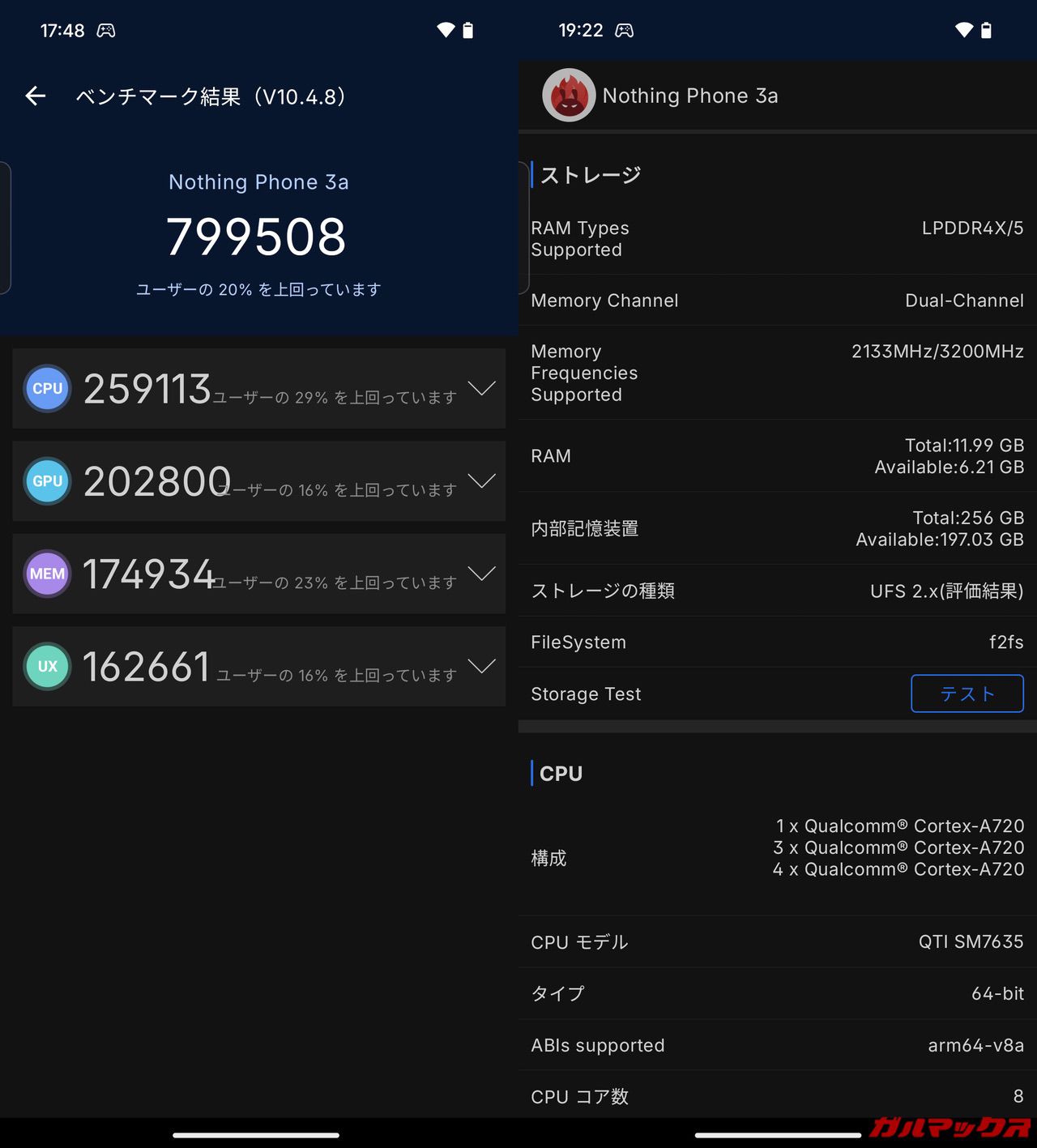 ▼SoCはSnapdragon 7s Gen 3搭載!去年の2aより性能も底上げされていて、原神も画質「中」なら楽しめるレベルで動きます。↓