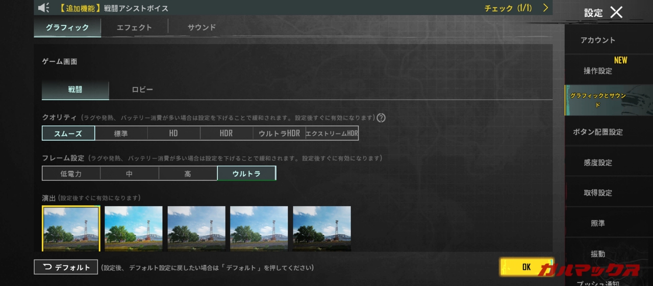 ▼PUBGモバイルはフレーム設定「ウルトラ」まで開放されていました。上限40FPSでプレイ可能です。↓