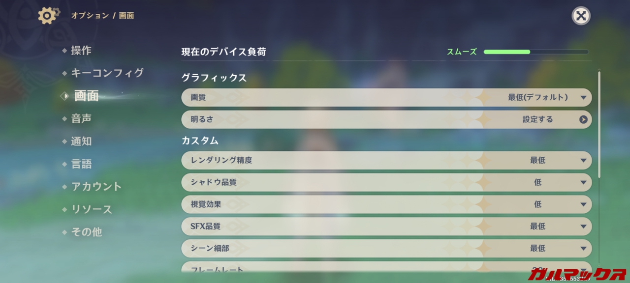 ▼グラフィックのデフォルト設定は「最低」となっていました。↓