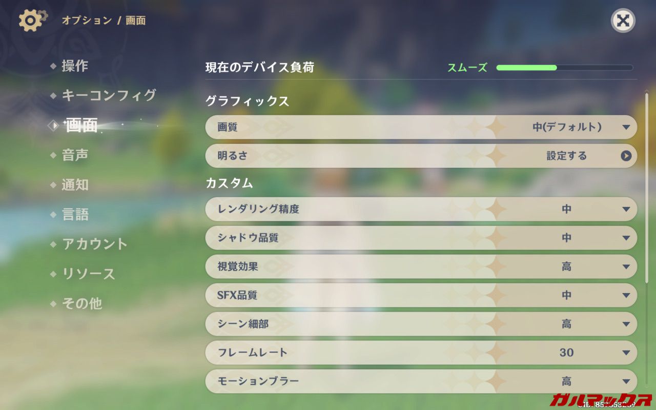 ▼グラフィックのデフォルト設定は「中」となっていました。↓