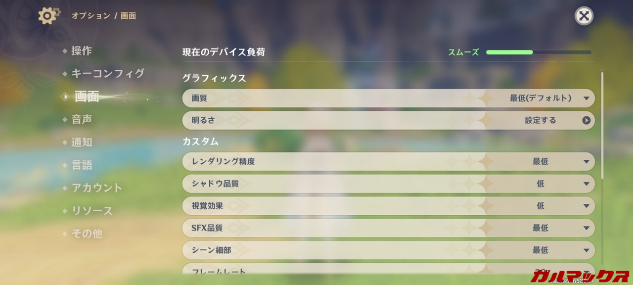 ▼グラフィックのデフォルト設定は「最低」となっていました。デフォルト設定は最適化などにより変わる場合があるので参考程度に考えておきましょう。↓